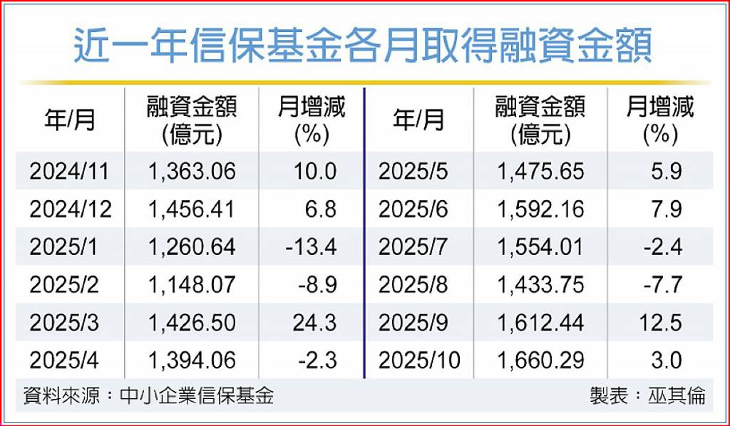 銀行主管指出,國內景氣熱度持穩,今年經濟成長優於預期,中小企業融資需求延續,今年包括關稅及風災侵襲,信保對於受影響企業推出融資方案,加上進入第四季常為市場資金需求高峰期,勢必推升整體信保融資金額上揚。